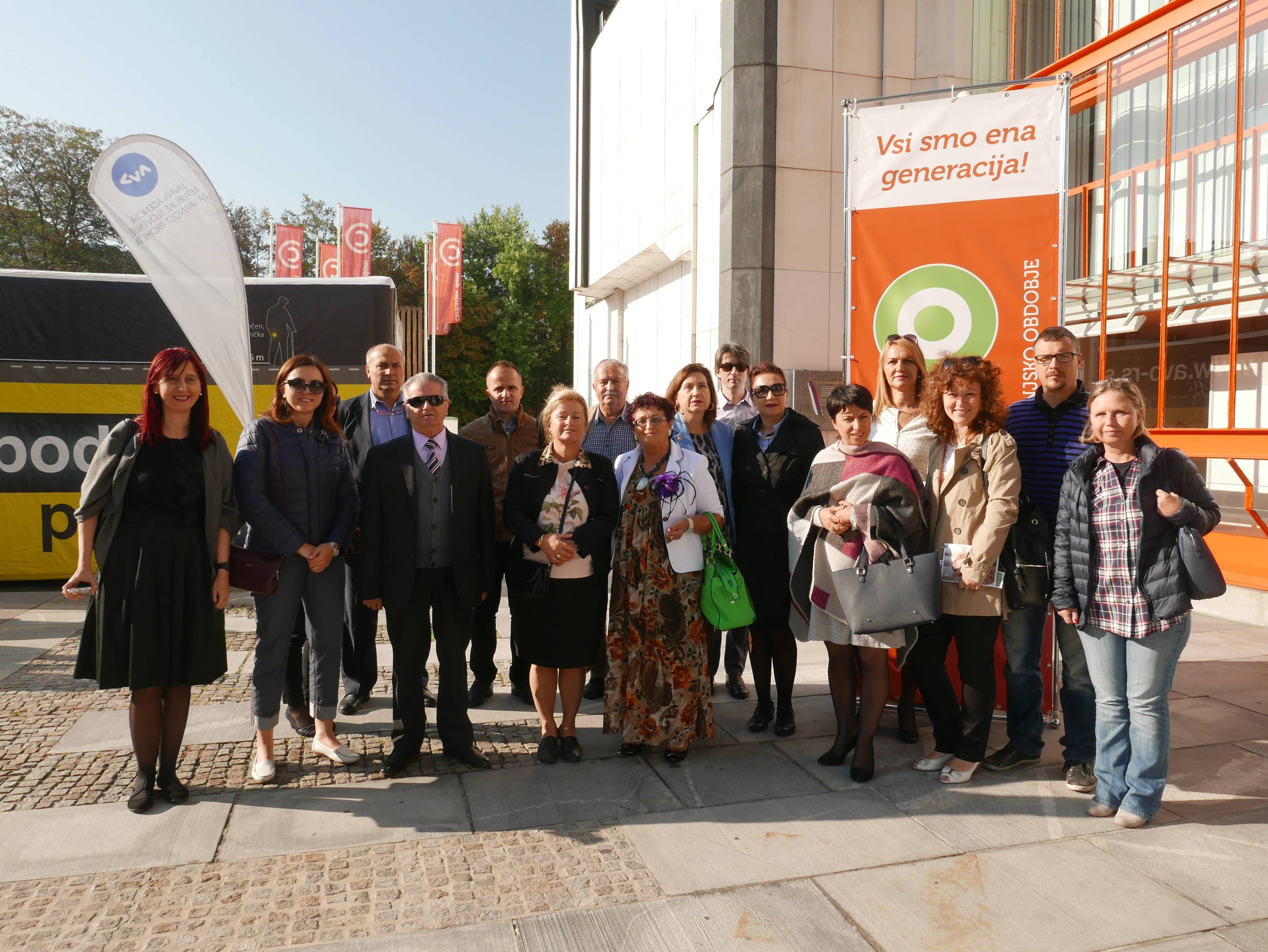 Poseta je trajala od 28. do 30. septembra i sastojala se iz dva dela. Prvog dana 28. septembra delegacije iz pet zemalja koje učestvuju u projektu (Albanija, Bosna i Hercegovina, Makedonija, Crna Gora i Srbija) i predstavnica Austrijskog Crvenog krsta su zahvaljujući Slovenskoj Filantropiji i Ministarstvu rada, porodice, socijalnih pitanja i jednakih mogućnosti učestvovale na 16. Festivalu Trećeg doba u Ljubljani: http://en.f3zo.si/festival-ljubljana/programme/. Delegacije su bile sastavljene od predstavnika organizacija koje projektom koordiniraju, predstavnika vlasti i samih starijih. Tog prvog dana pored prisustvovanja svečanom otvaranju, delegacija projekta bila je gost na prijemu kod Ministarke rada, porodice, socijalnih pitanja i jednakih mogućnosti dr Anja Kopač Mrak i Ombudsmana, Vlaste Nussdorfer, gde smo imali priliku da kratko predstavimo projekat i da postavimo pitanja.
