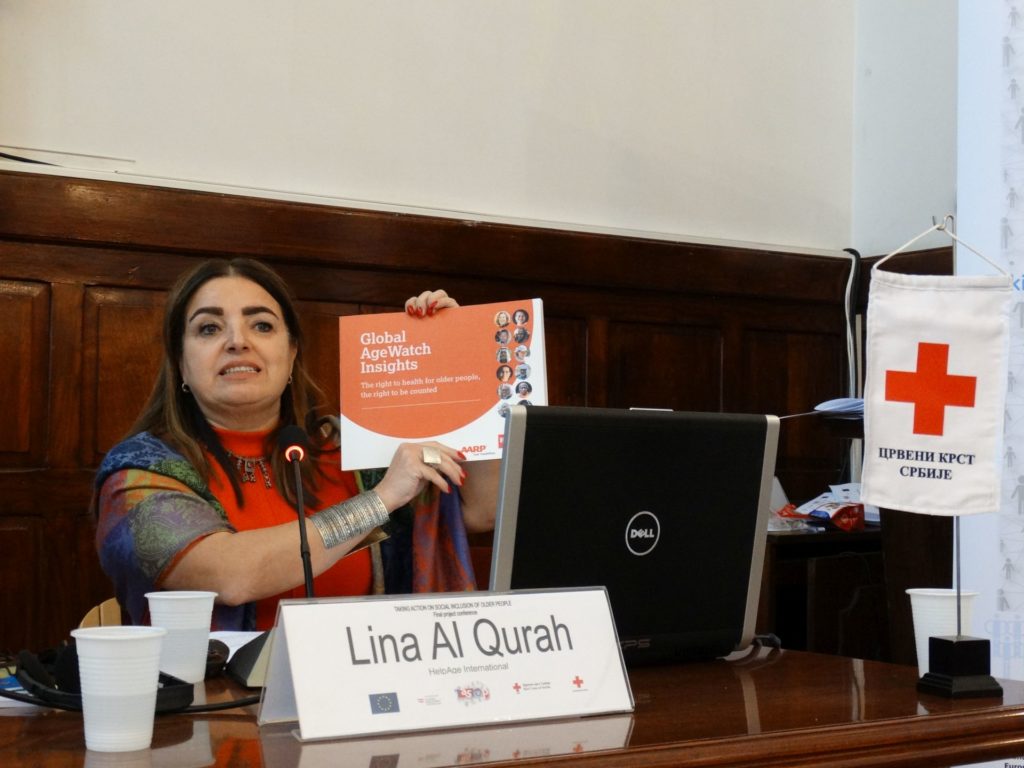 Nataša Todorović, ekspertkinja Crvenog krsta Srbije je predstavila glavne uspehe projekat „Inicijativa za socijalno uključivanje starijih osoba“. Pre svega u zemljama u kojima su mreže postojale Srbija (HumanaS), Albanija (MOSHA) i Bosna i Hercegovina (Dostojanstveno starenje) mreže su se proširile i tokom implementacije projekta dobile na vidljivosti. U Makedoniji (InkluzivaM) i Cnoj Gori (Dignitas) mreže su osnovane u okviru projekta i već sada za tri godine implementacije pokazalo se da predstavljaju snagu koja je značajna za zagovaranje. U svim državama je sprovedeno istraživanje i na osnovu njih su izrađene preporuke za donosioce odluka kako bi se unapredio položaj starijih, ali su takođe na osnovu dobijenih podataka kreirane javne kampanje kojima se promovisala pozitivna slika o starijima i zagovarlo za dostojanstven život u starosti. Ukupno su u svih pet država za tri godine implementacije partneri imali preko 750 sastanaka sa donosiocima odluka. Ali je bilo i značajnih aktivnosti na globalnom nivou kroz učešće na Ministarskoj konferenciji starenju u Lisabonu 2017. godine i aktivno učešće partnera u projektu u pripremama nacionalnih izveštaja za Regionalnu strategiju implementacije Madridskog međunarodnog plana akcije o starenju, učešće starijeg volontera Crvenog krsta Srbije na desetom sastanku Otvorene radne grupe za starenje u Ujedinjenim nacijama u Njujorku i učešće na obeležavanju Međunarodnog dana starijih osoba 1. oktobra 2018. godine takođe u Ujedinjenim nacijama u Njujorku. Nataša Todorović je i 2017. i 2018. godine dala video izjavu za Ujedinjene nacije, a povodom obeležavanja 15. juna Međunarodnog dana borbe protiv nasilja nad starijima. Sprovedene su edukacije starijih osoba na temu ljudskih prava i građanskog aktivizma, preko 5.000 starijih je prošlo kroz ove edukacije. Važan deo projekta bila je podrška malih lokalnih inicijativa za socijalno uključivanje starijih gde su partneri govorili o lekcijama naučenim iz implementacije 62 mikro-projekta u pet država, a u pripremi je i regionalna publikacija koja će sadržati primere dobre prakse i zagovaračke strategije prikupljene kroz implementaciju. U Biltenu koji je izlazio na svakih tri meseca pisali su eksperti i ekspertkinje iz čitavog sveta. Za svaku mrežu je izrađen web sajt i postoji jedan zajednički za TASIOP projekat (prezentaciju Nataše Todorović možete preuzeti ovde).
